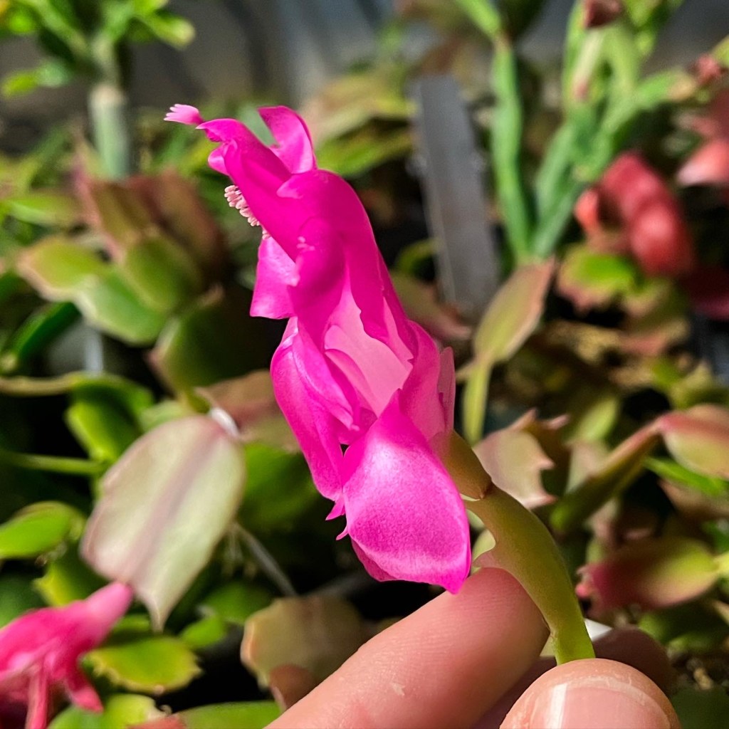My love for Schlumbergera began about 10 years ago, when I obtained about seven different unnamed cultivars in a mixed pack of cuttings. After growing them on for 8 years, I decided to cross some of them together. When the first seedlings flowered, I was hooked! I began to learn more and more about the hybridization of Schlumbergera, and have begun to work on a real breeding collection of plants.